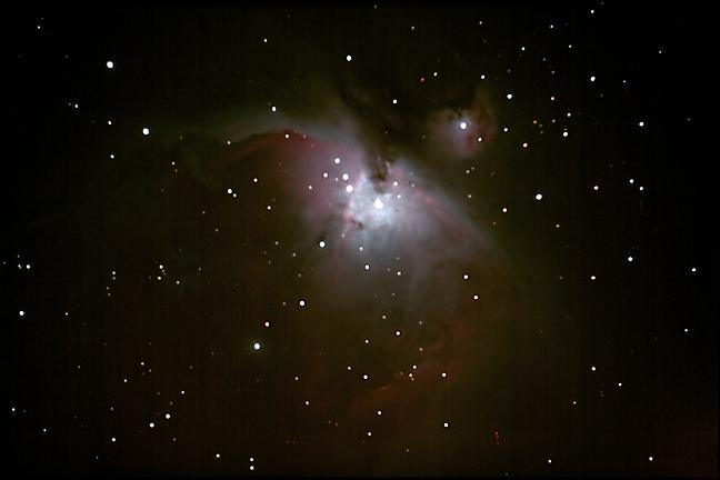 Date: 2008-01-07 Object: Messier 42 - Great Orion Nebula Scope: Meade 10" LX200R Camera: Canon 350D and Meade 0.63 Focal Reducer Exposure: 15 seconds Images: 15 Notes: Slightly out of focus - need to try harder to achieve proper focus